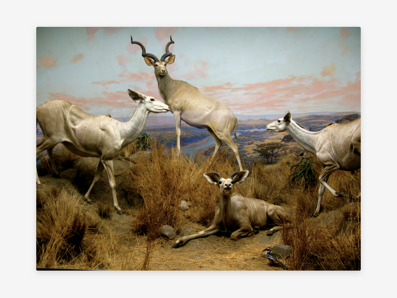 This is mainly because the museum’s multiple taxidermy dioramas always looked like huge 2D illustrations to me. Maybe you’re checking out a scene depicting the Serengeti: the lions, elephants, and zebras are all positioned in a story. A lion is eating a dead zebra and the elephants are cautiously watching. The diorama’s background is hand-painted in a color palette that represents the animals’ natural ecosystem. If it wasn’t for the formaldehyde it’s essentially a huge illustration.
